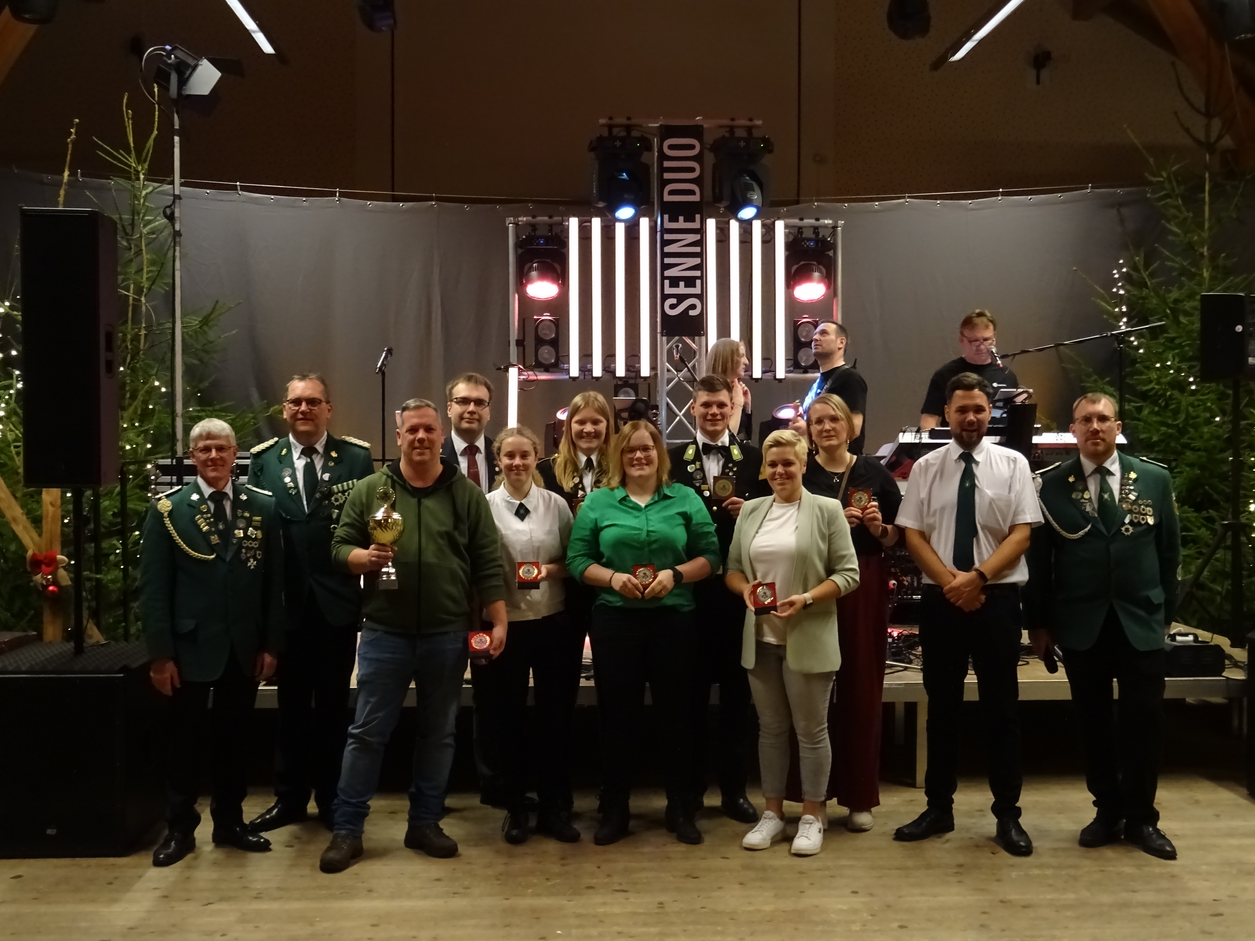 Den Jahresabschluss des Schützenvereins Haaren ist der traditionelle Kompanieabend, dass am 27. November gefeiert wurde. Neben einem leckeren Essen für unsere Mitglieder und Gäste, sorgte die Siegerehrung "Gute Tat Schießen" für Spannung an diesem Abend. Beim Schießen am 02. November waren 35 Mannschaften angetreten. Sieger wurde die Mannschaft 1 des FMC Albatros mit 325 Ringen. Damit ist der FMC Albatros der Rekordchampion mit 8 Pokalsiegen. Marina Lücking war die beste Einzelschützin von den 140 angetretenen Schützen. Sie erreichte von maximal 100 Ringen, sehr gute 92 Ringen. Für die "Gute Tat" kamen mit Kompanieschießen 2025 aufgerundet durch den Schützenverein 1.300,00 € zusammen. Im letzten Jahr wurde der Gewinn an die OGS der Grundschule Haaren/Helmern weitergereicht.